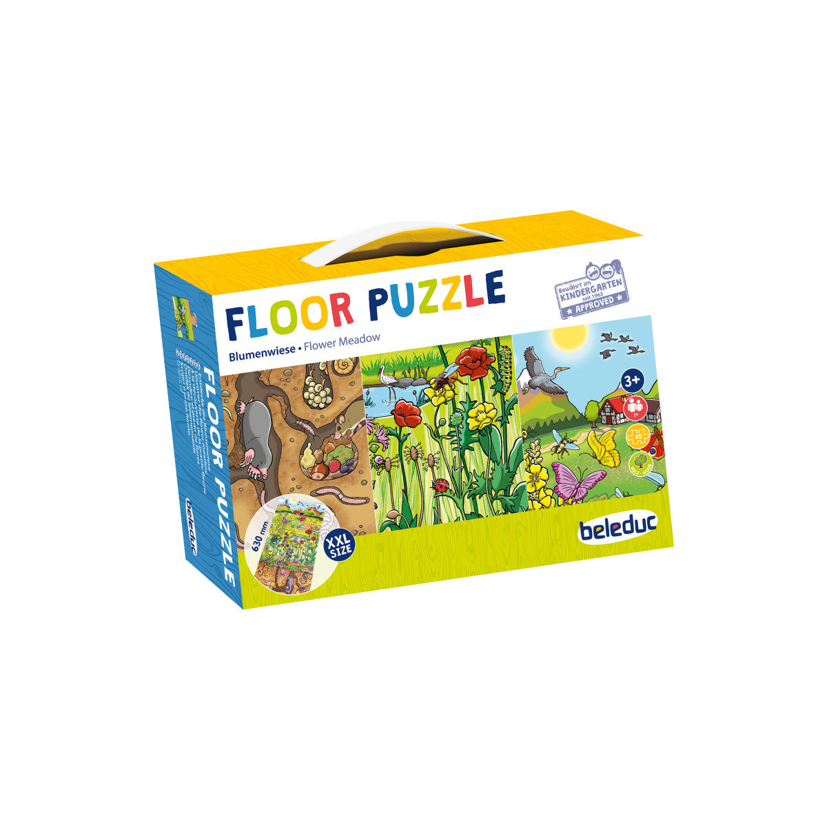 Explore the Flower Meadow Floor Puzzle, designed to foster communication and storytelling skills in children. This puzzle allows kids to embark on a journey of discovery, where they can learn about insects, plants, and animals in a fun and interactive way. With 45 large wooden pieces, each puzzle can be assembled individually or combined to create a beautiful story puzzle that doubles as a hidden object game.