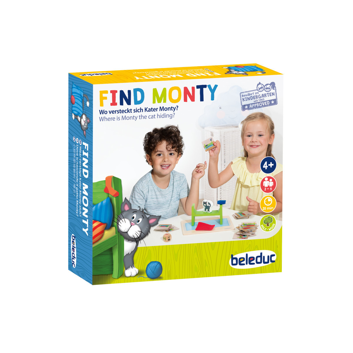 A game for cat-finders with a good memory who always want to know where the cat hid last. Describe Monty's hiding place or reconstruct it using pillows, blanket and the bed! Supports spatial perception and language development. For 2-5 players.