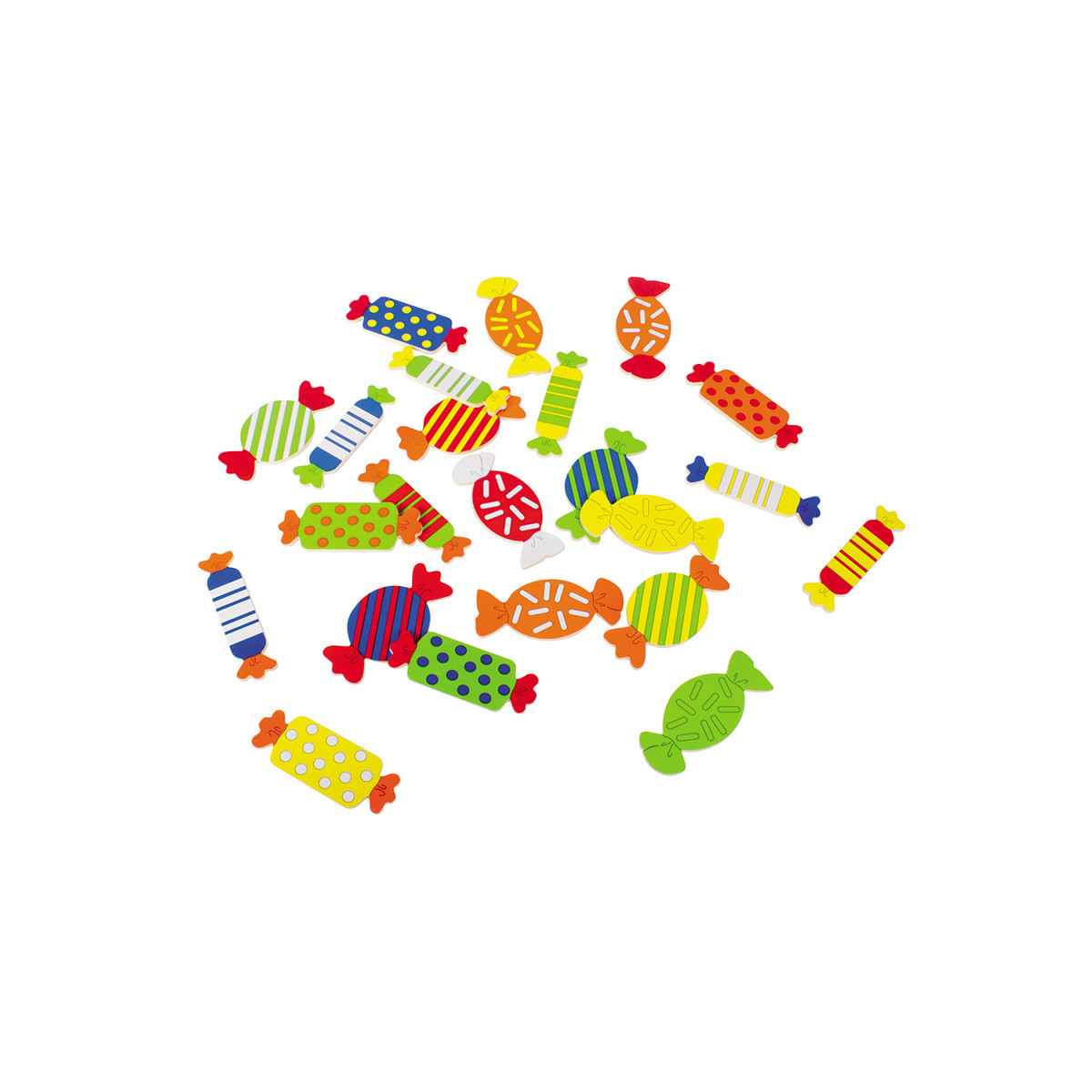 Players throw three colored dice and need to find the sweet with the right combination of colors that are shown on the dice. The popular game from Beleduc for the floor! Depending on which combination appears on the three color cubes, the matching color candy must be found.
