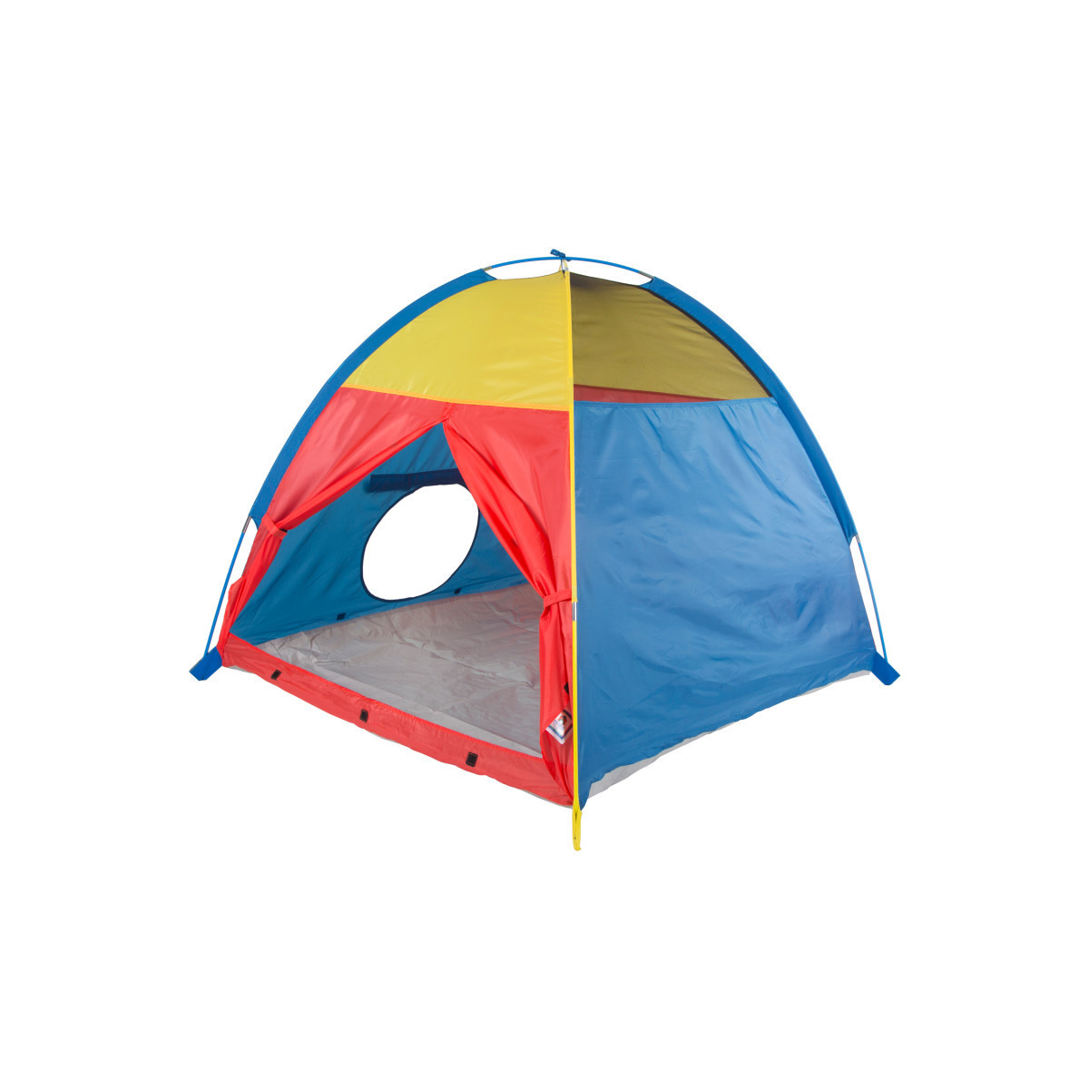 Not all tents are created equal. This primary colored Polyester Taffeta tent is so durable it can be used indoors or outdoors. Use it alone or combine it with the "Find-Me" connecting tunnel (sold separately). Connect several tunnels and tents together to create a whole city. Tent comes with "mesh" ventilation panels at the top for airflow on hot days as well as for easy viewing. Durable, washable floor made of polyethylene keeps spills from ruining the carpet and it keeps you dry from the wet grass. Great fun for an outdoor backyard. Measures 48" x 48" x 42".