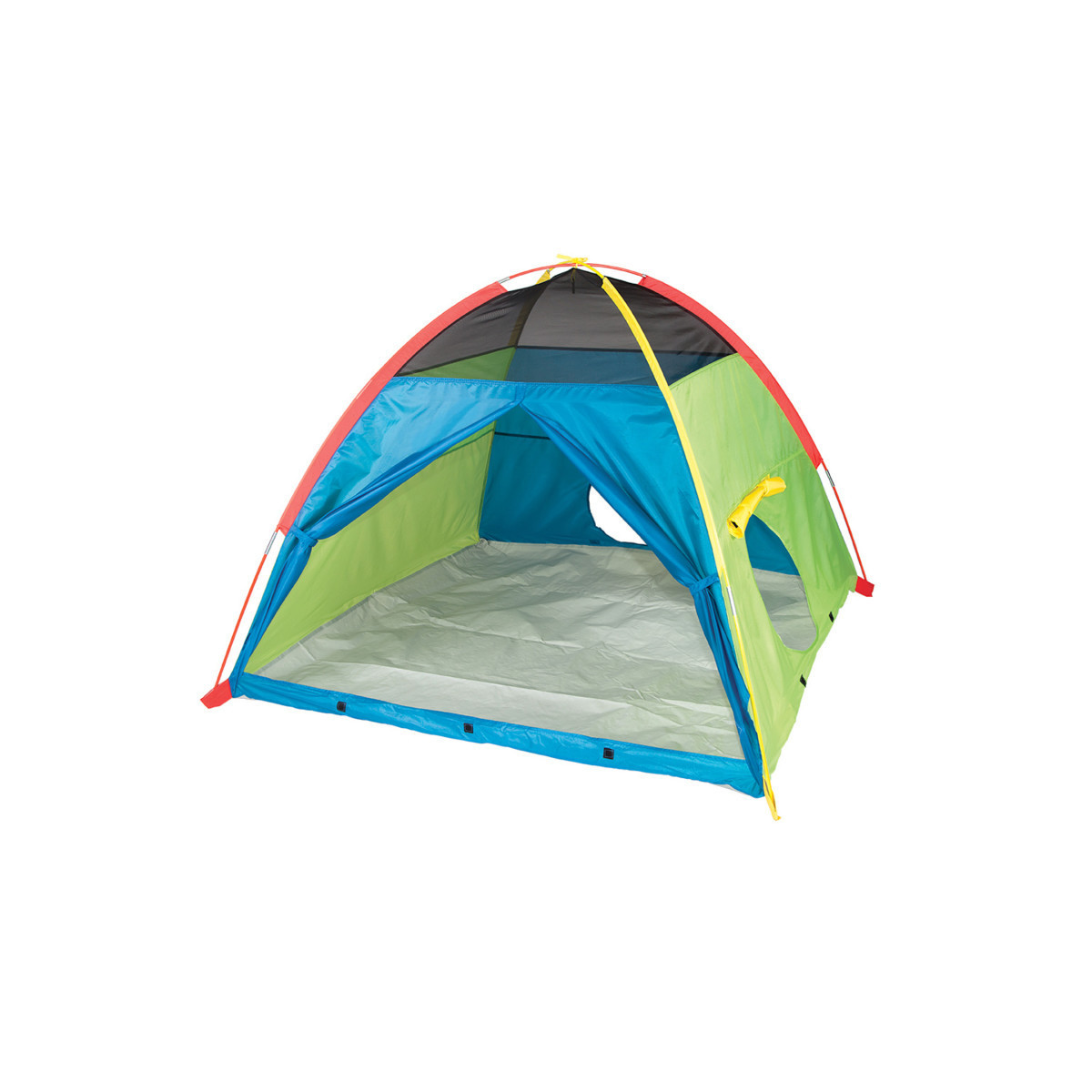 Come one! Come all! There's room for everyone in our Super Duper 4 Kid Dome Tent! Made of high quality Polyester Taffeta and G3 Safety-Coated "Super Poles," this durable tent stands at 58" x 58" x 46" to accommodate both children and adults alike, whether you play inside or outside. The Super Duper 4 Kid Dome Tent features a waterproof floor for easy clean-up, color-coated poles and reinforced pole pockets for fast assembly, and double stitched seams along stress points for reinforcement. It also includes No-See-Um Mesh to allow for ventilation while keeping bugs at bay, and two tunnel ports with roll-up flaps and hook and loop fasteners that can be connected to your favorite Pacific Play Tents tunnels. Once playtime is over, simply tuck the tent into it's sturdy carry bag for convenient travel and storage. Everyone is sure to feel welcome in the Super Duper 4 Kids Dome Tent!