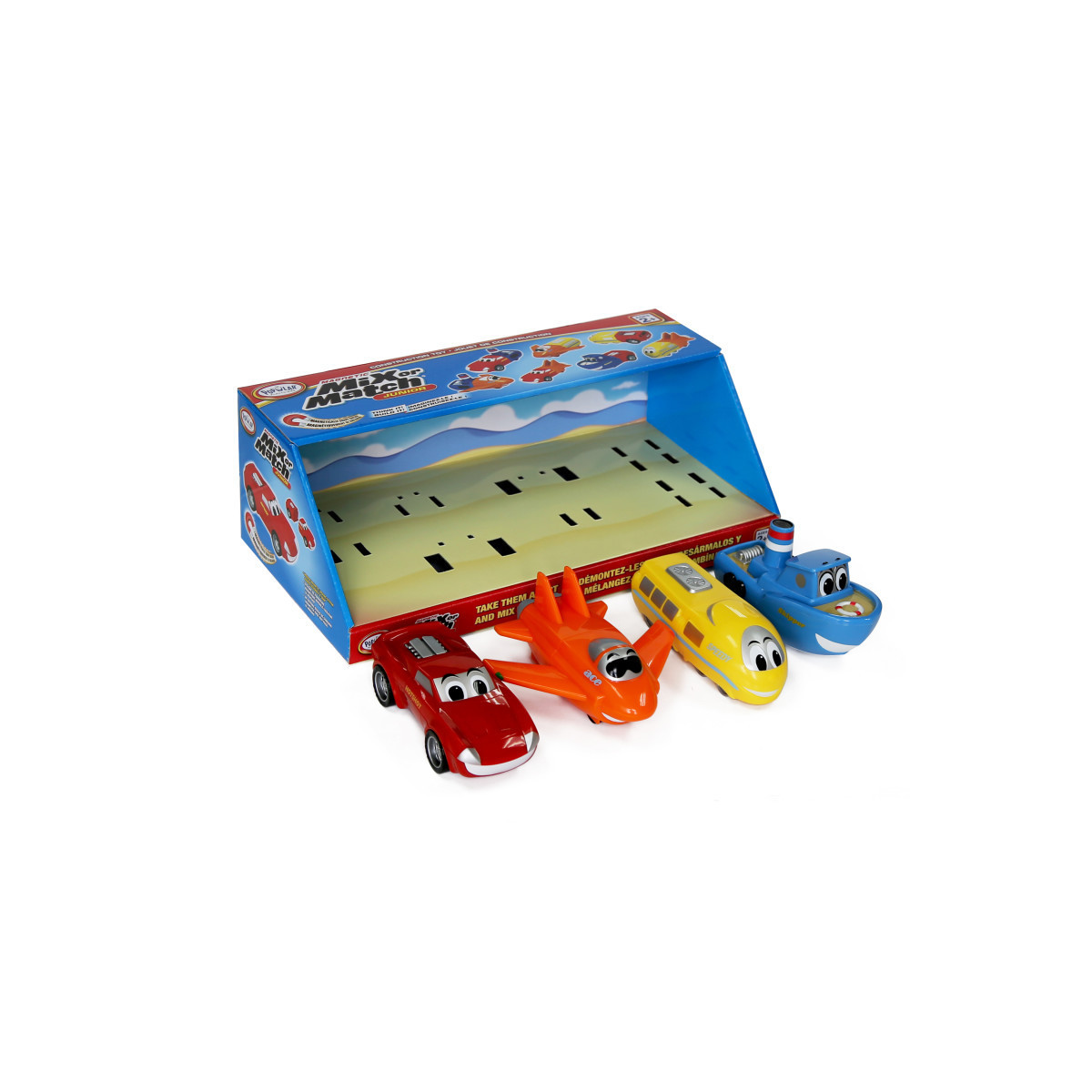 Welcome to Magnetic Mix or Match® Junior the toy that lets you build a vehicle like no other. With these eight magnetic pieces building an imaginary vehicle like a Plane Train or Car Boat is a snap. Or, mix the pieces up then reassemble them by matching colors and Magnetic Mix or Match® Junior becomes your child's first 3-D matching puzzle! Recommended for ages 3-6 years. Includes 8 two-piece magnetic vehicles.