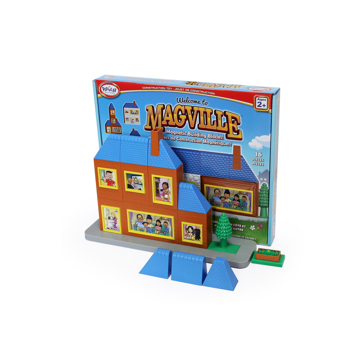 Magnetic Magville House is a system that allows young children to build the house of their dream! The set is interchangeable with Magville Castle (sold separately) so children can expand their building opportunities. The set has a brick finish on one side and a stone finish on the other.