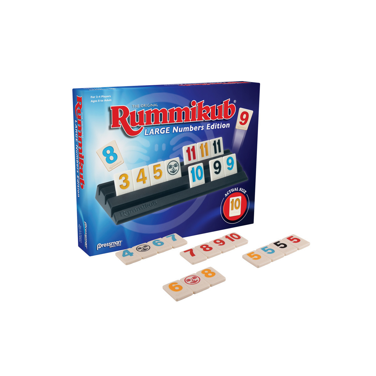 It's no surprise that Rummikub is so popular - it has all the elements that make a great game: it's easy to learn and fast moving, it's different every time it's played, it combines luck and strategy, and it changes quickly so every player has a chance to win until the very end. Players take turns placing numbered tiles in runs (consecutive numbers of the same color) and groups (three or more of the same number in different colors), rummy style. It's easy to learn, but packed with strategy - the "board" changes all the time as players adjust the tiles on the table. The Joker tiles add to the fun and can be played as any color or number. Be the first player to play every tile on your rack to win! Rummikub is ideal for people of different ages to play together, and reinforces STEM and STEAM concepts such as sequencing, pattern recognition, and planning skills. This set includes 106 playing tiles with bright over-sized numbers, 4 plastic tile-holder racks, and complete instructions. For 2-4 players, ages 8 and up.