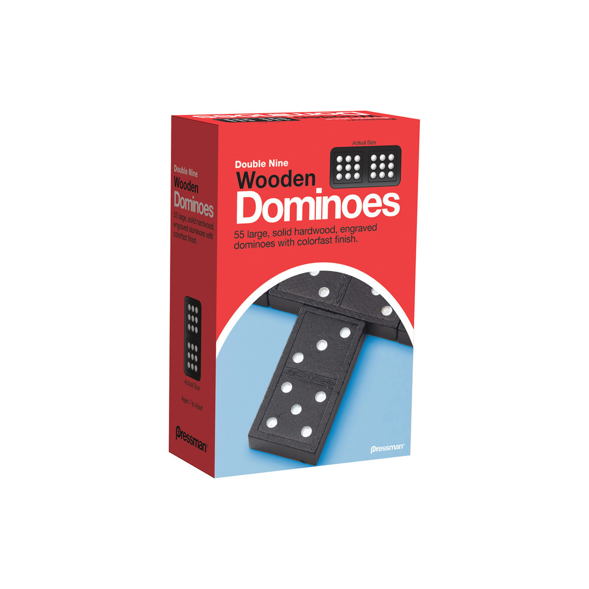 Includes a full set of 55 large, hardwood dominoes
