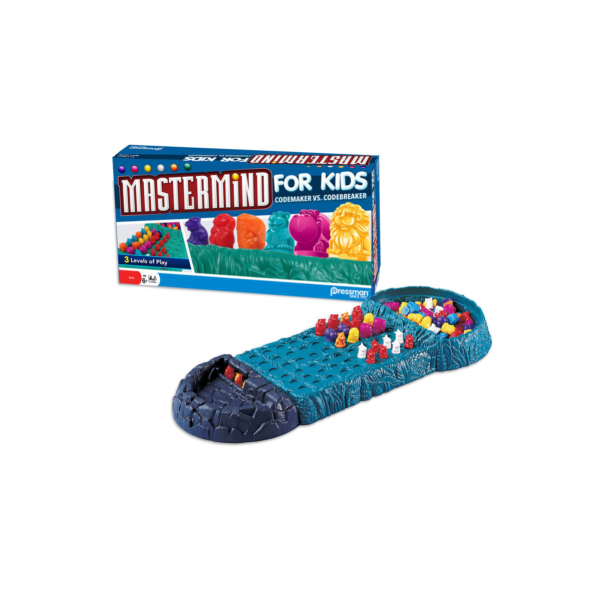 Kids test their code-cracking prowess with Mastermind for Kids, the challenging game of logic and deduction. The game comes with three levels of play, so kids can learn and grow with the game. With more than 55 million units sold, Mastermind is a great strategy game...and one of the world's most popular games ever. It's easy to learn and fast to play, and it's different every time. The Codemaker sets a secret code, then the Codebreaker tries to match the code using logic, deduction, and maybe even a little bit of luck. After each move, the Codemaker gives clues to the Codebreaker. With lots of possible code combinations, every game is guaranteed to be a brainteaser. All of these game components can be stored in the game board. The winner will be a true Mastermind! For 2 players, ages 6 and up. Game contents: Plastic game base with Rocky Mountain tray, 72 Jungle animals in 6 colors, 15 Red scoring pegs, 15 White scoring pegs, and complete instructions.