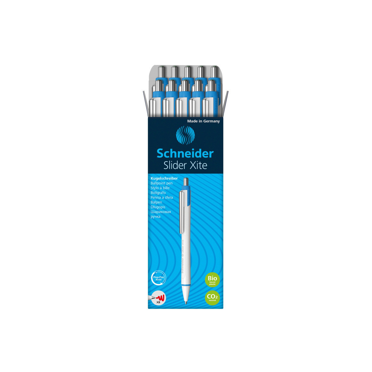 The Schneider Slider Xite XB Retractable and Refillable Ballpoint Pen features Viscoglide® technology for extraordinarily smooth, gliding writing and a barrel consisting of 90% bio-based plastics. Waterproof according to ink standard ISO 12757-2, ink dries quickly, even on smooth paper, and is smudge-proof when highlighting it later on. The wear-resistant stainless steel tip helps prevent grinding across the page and guarantees the large ink supply can be fully used without smearing. The slightly concave-shaped barrel has a sturdy metal clip and promotes tireless, relaxed writing. Compatible with the Plug+Play System, the Slider Xite can use a variety of refill formats, including the giant Slider 755 XB refill and writes with an extra broad (XB), or approximately 1.4 mm line width.
