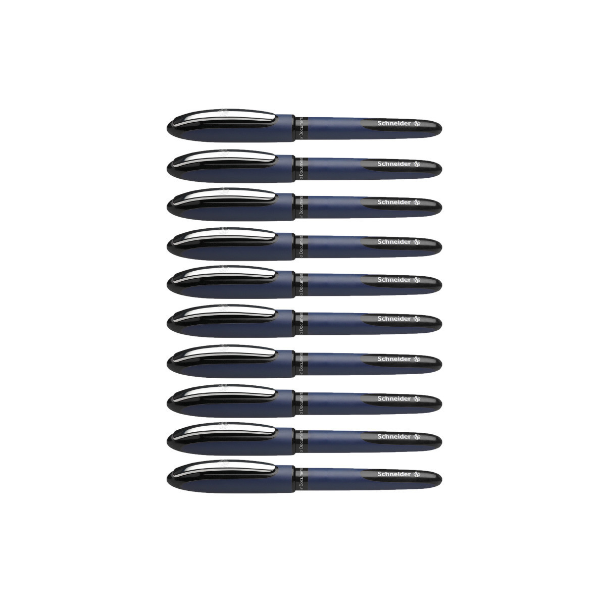 Rollerball with Ultra-Smooth tip for the best writing experience. Line width approximately 0.6 mm, waterproof according to ink standard ISO 14145-2. The innovative Super-Flow-System guarantees consistent ink flow from start to finish. The large ink reservoir has a level indicator and every drop of ink is used. The cap-off ink does not run dry even if the cap is removed for 2-3 days. The One Business has a sturdy metal clip and a rubberized grip zone that provides a secure hold for relaxed writing. Sold as a pack of 10 pens.
