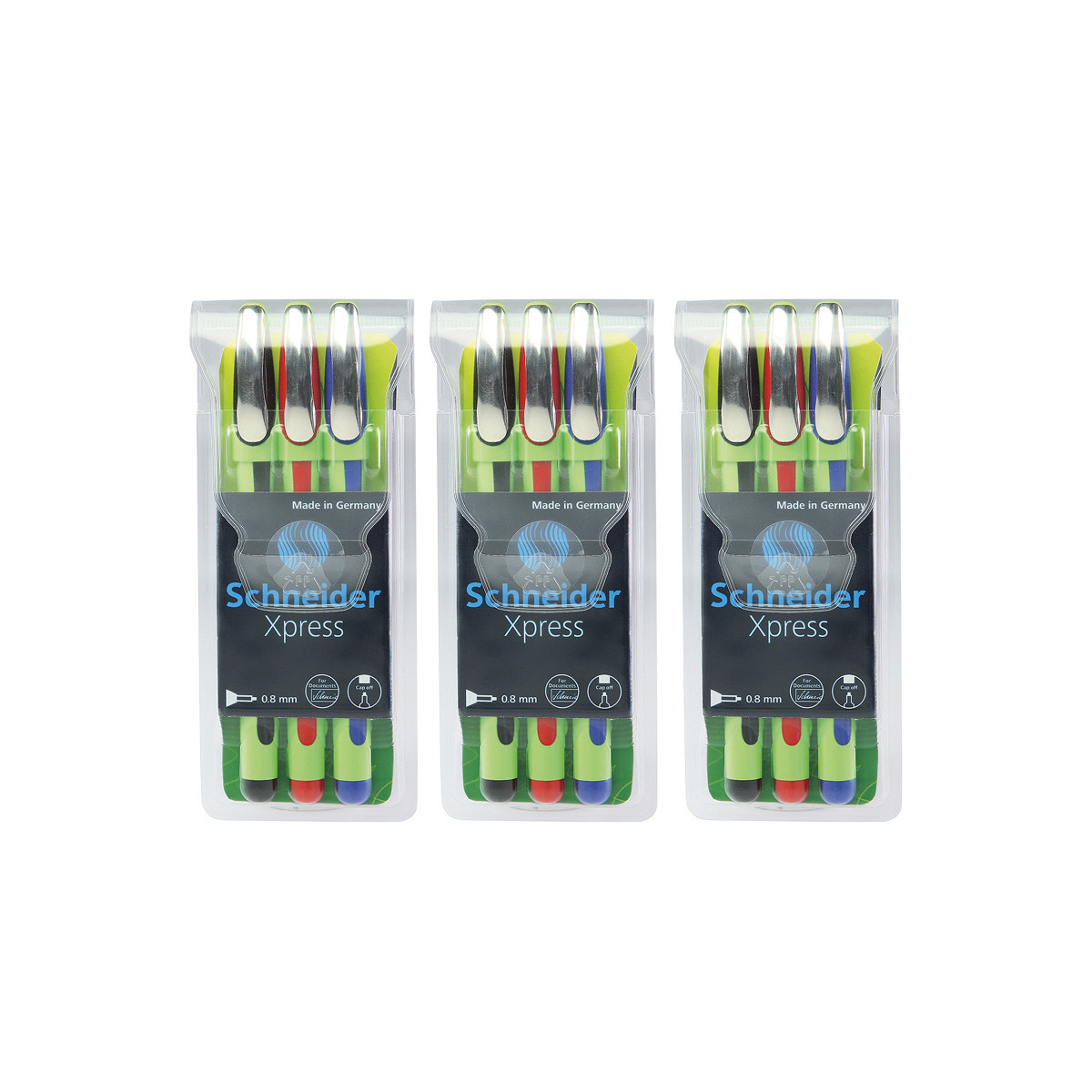 Premium fineliner for expressive and striking writing, line width approximately 0.8 mm. The water-based inks are suitable for documentary use according to ink standard ISO 14145-2. Ergonomically shaped, generously rubberized barrel designed for relaxed writing without hand fatigue. The fibre tip glides extremely gently and is stabilized with a stainless steel tube that even enables you to work with a ruler and template. The cap-off ink does not run dry even if the cap is removed for 2-3 days. The cap has a sturdy metal clip and fits neatly on the end of the barrel. Each pack includes 3 pieces: black, red, blue. Sold as 3 packs for a total of 9 pens.