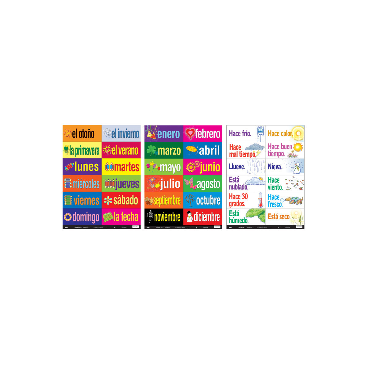 Set of 36 versatile, durable cards for chalkboards, bulletin boards, flashcards. Features essential Spanish vocabulary including months, days, seasons, and weather expressions. Cut them out and use these laminated cards for years. Colorful resource that motivates while teaching. Great for classroom and student reference. Made from durable stock. Perfect for the second language learner.