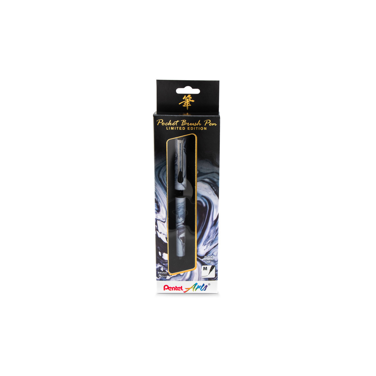 Pentel Arts Limited Edition Pocket Brush Pen with 2 Black Refills, Marble Wrap