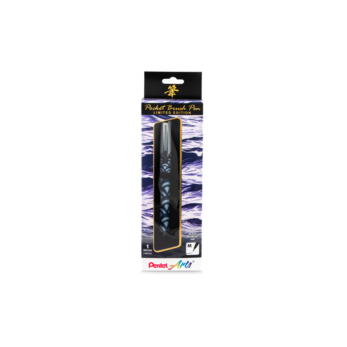 Pentel Arts Limited Edition Pocket Brush Pen with 2 Black Refills, Indigo Wrap