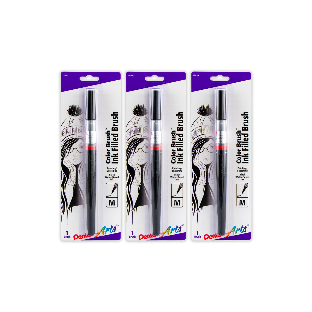 The versatility of the Color Brush makes it easy to use between line and wash. The water-based dye ink dries quickly and produces rich intense colors. The durable nylon brush tip can flood wide strokes with solid color and then give a light touch to delicate lines. The refill barrels are easy to replace, and the reverse thread stops any leakage. Sold as a pack of 3.