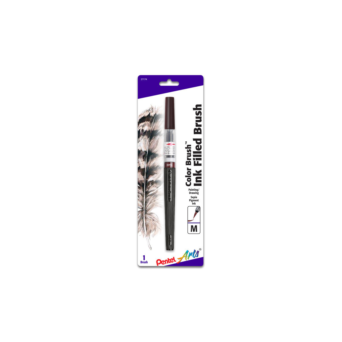 Pentel Arts Color Brush with Water-Based Ink, Medium Tip, Sepia, 1-Pack