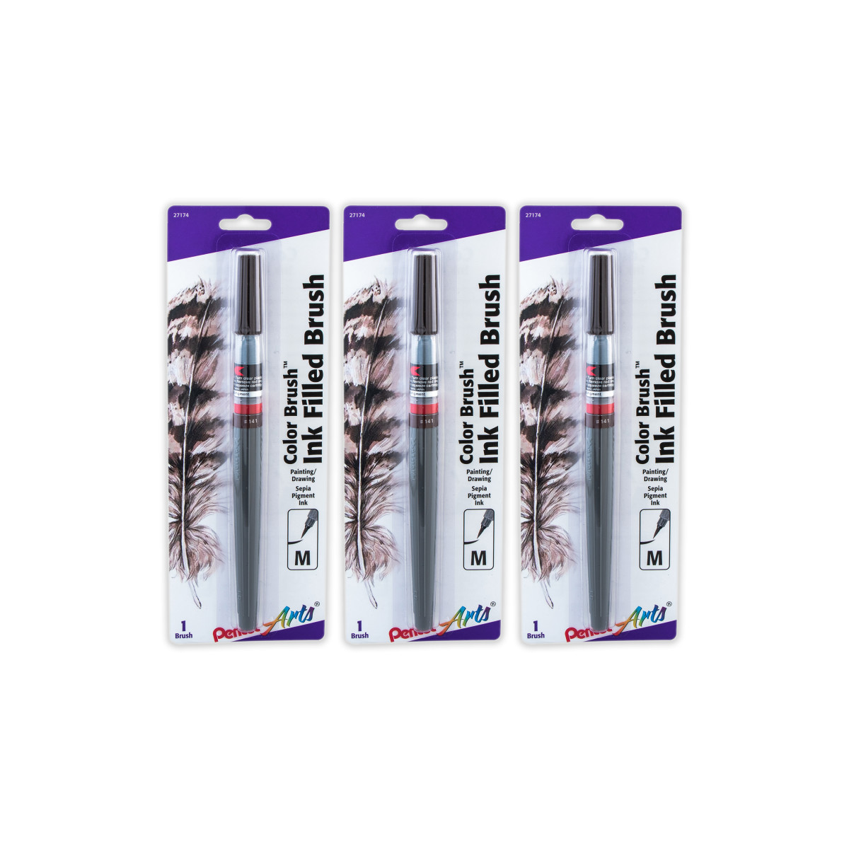 The versatility of the Color Brush makes it easy to use between line and wash. The permanent, pigment ink is acid-free, fade proof and water resistant. The durable nylon brush tip can flood wide strokes with solid color and then give a light touch to delicate lines. The refill barrels are easy to replace, and the reverse thread stops any leakage. Sold as a pack of 3.