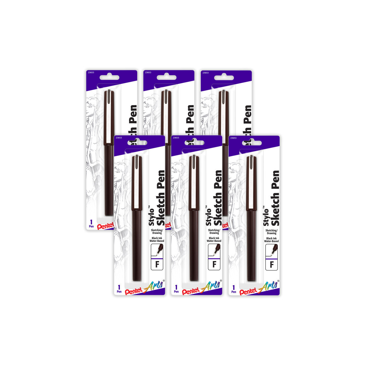 The Stylo Sketch Pen has a flexible nib creates a variety of line widths, from thick to thin. Rich water-based dye ink dries quickly for sketching and drawing. Perfect for creating graphic designs, cartoons, calligraphic lettering and fine details. Sold as a pack of 6.