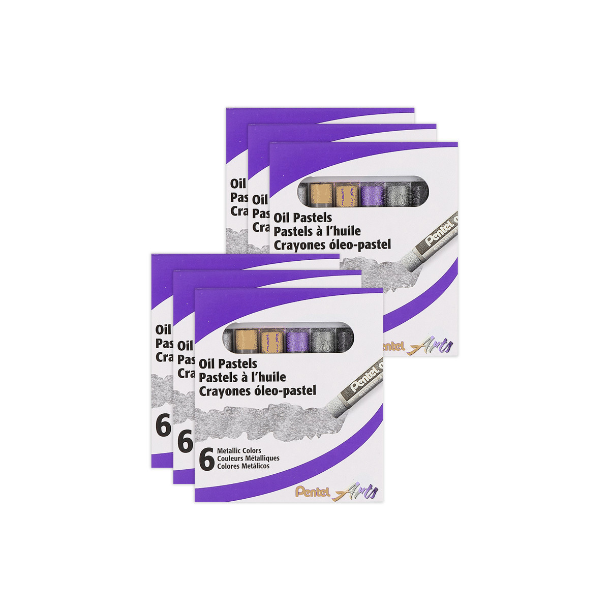 The Pentel Arts Oil Pastels provide more vibrant color than chalk pastels, and make your artwork come to life. Rich, fade-resistant color applies smoothly and blends easily to produce subtle shades and tints. Best for use on board, paper and canvas. Each set includes 6 oil pastels in metallic colors: Gold, Silver, Metallic Red, Metallic Green, Metallic Blue and Gunmetal. Sold as 6 sets for a total of 36 oil pastels.