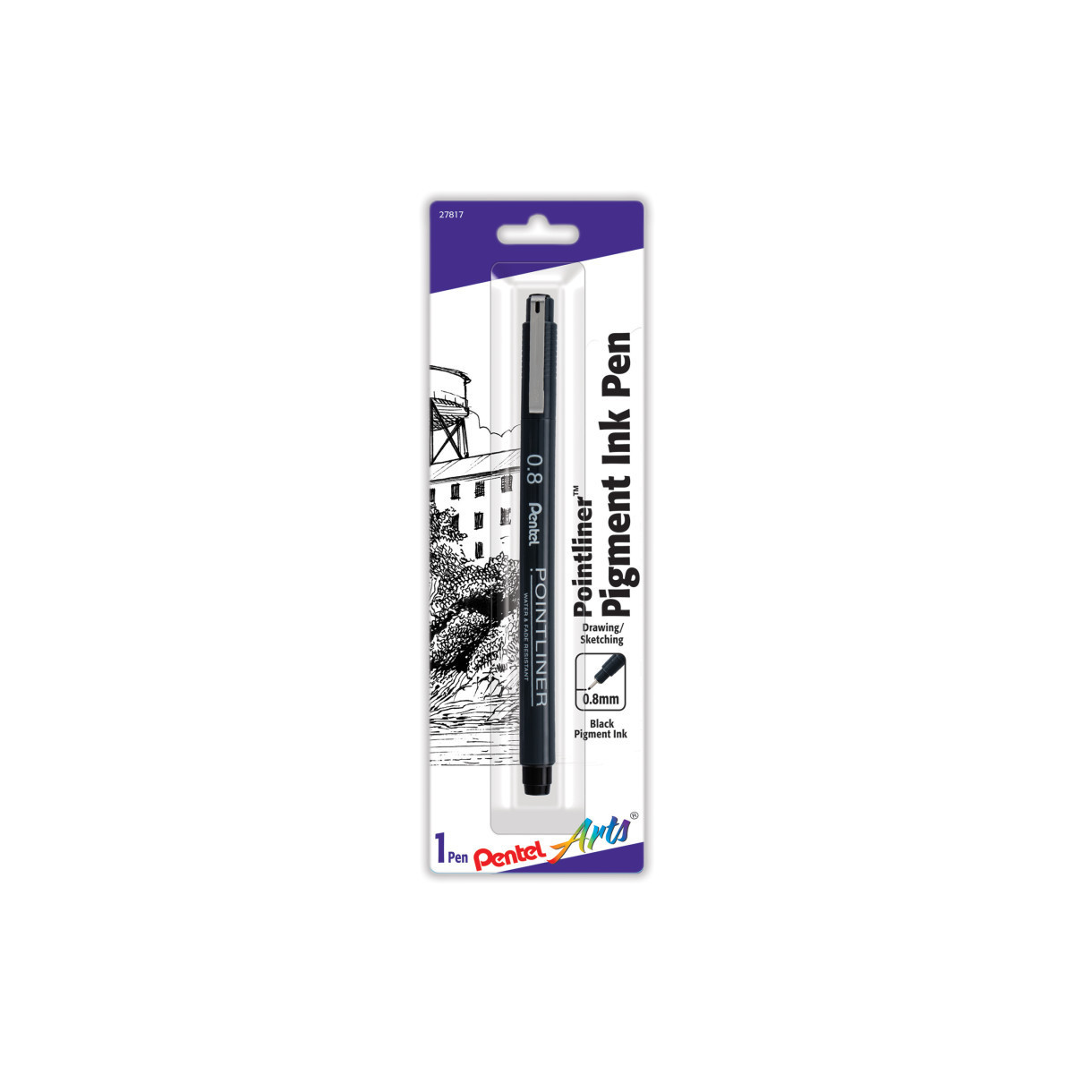 Pentel Arts Pointliner Pen, 0.8mm, Black Pigment Ink, 1-Pack