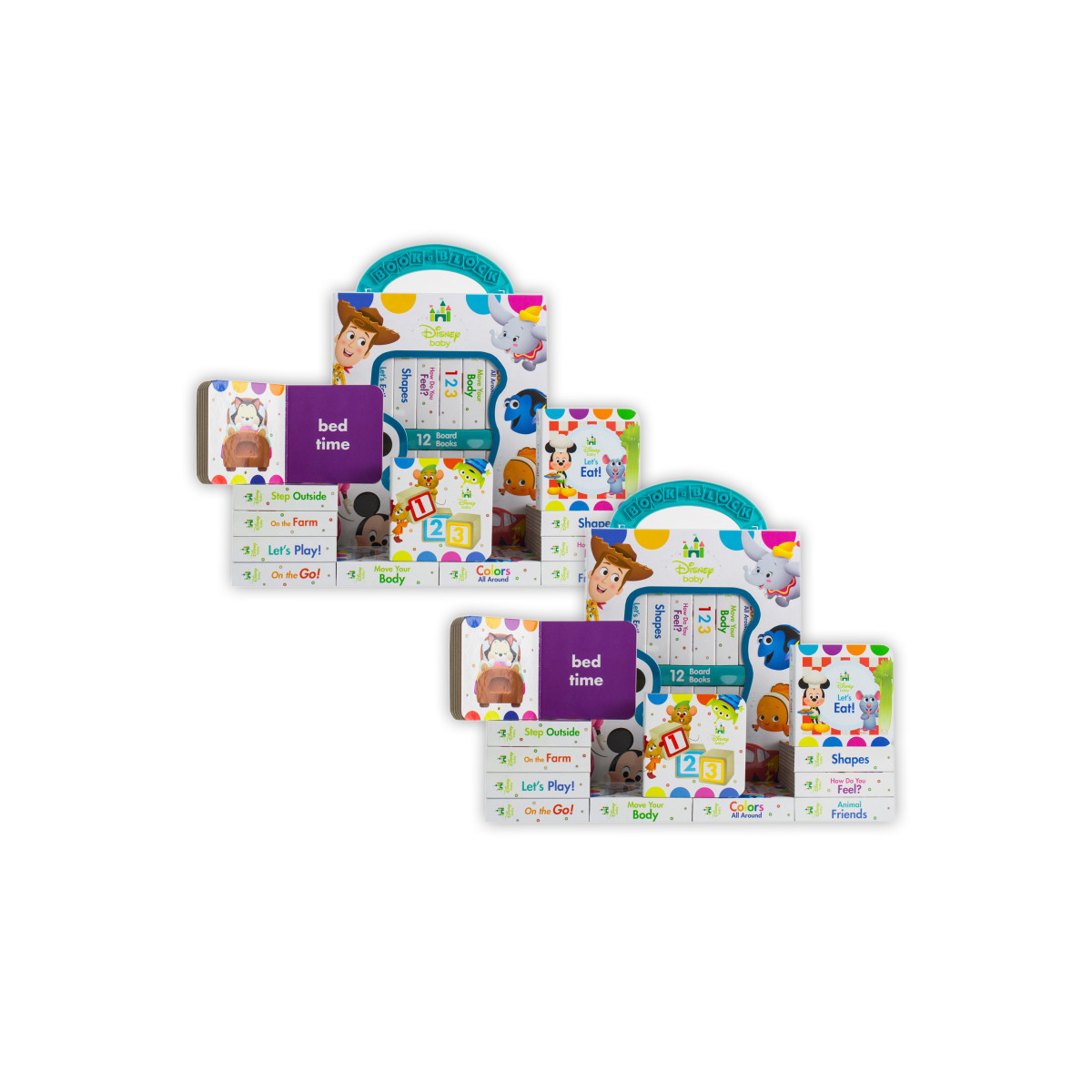 Little ones love to laugh and learn along with their favorite characters! Carry-case makes it easy to tote each 12-book set wherever you go. Book content includes early learning concepts. Sharing story time with your little one strengthens your bond. Handling books at an early age leads to a lifelong love of reading. Books measure 2.875" x 2.875". Box measures 6.75" x 8.5" x 3". Each set includes 12 books. Sold as 2 identical sets for a total of 24 books.