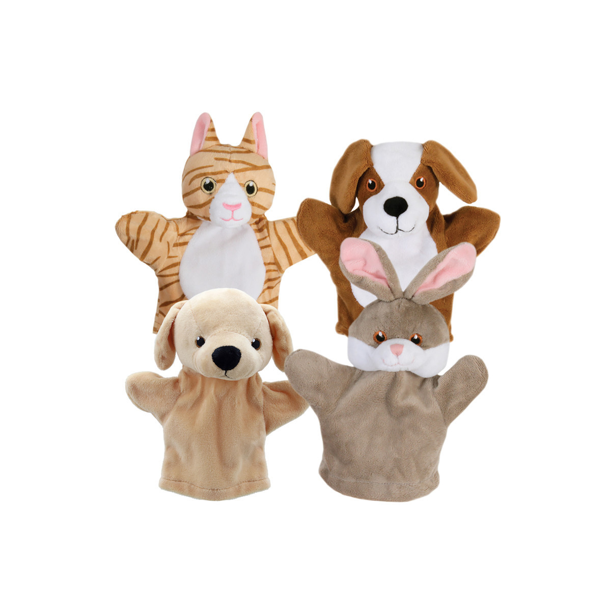 My First Puppet Pet set has all the friendly pets your children will love. From the cuddly yellow Labrador, the long eared Rabbit and the sweet Cat, to the soft furry eared Dog. With realistic embroidered eyes and beautiful features, they make a wonderful fun addition to story time and the perfect starter puppet.