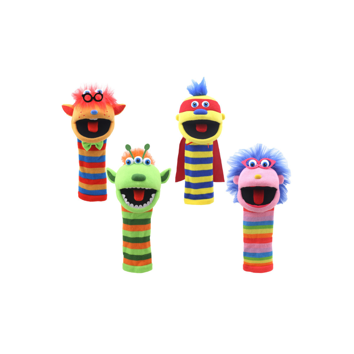 Larger than life characters, full of mischief with friendly faces and big mouths. A fabulous, fun, knitted Sockette puppet with a squeaker in its tongue is sure to get the conversation started! Sockettes are great fun to use and will entertain all! Suitable for children from 18 months and above. Measures approximately 15" x 5.5" x 5". Set of 4 puppets: Gloria, Humphrey, Narg and Zap.