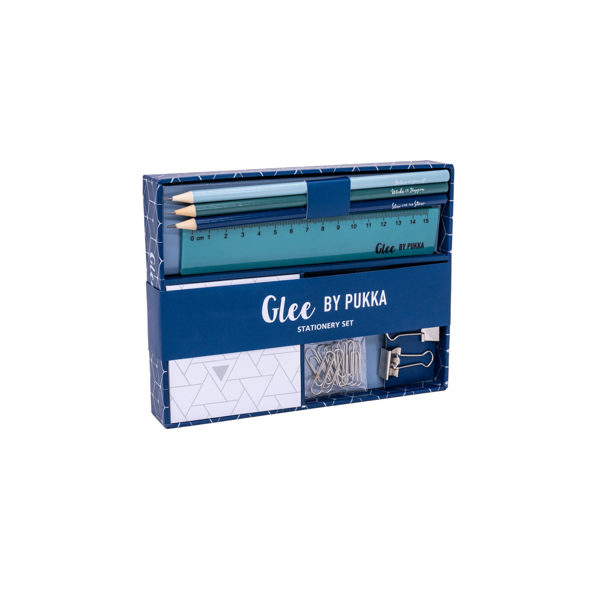 Sold as 3 sets, each individual set includes 3 pencils, a ruler, assorted stationery, and sticky notes.