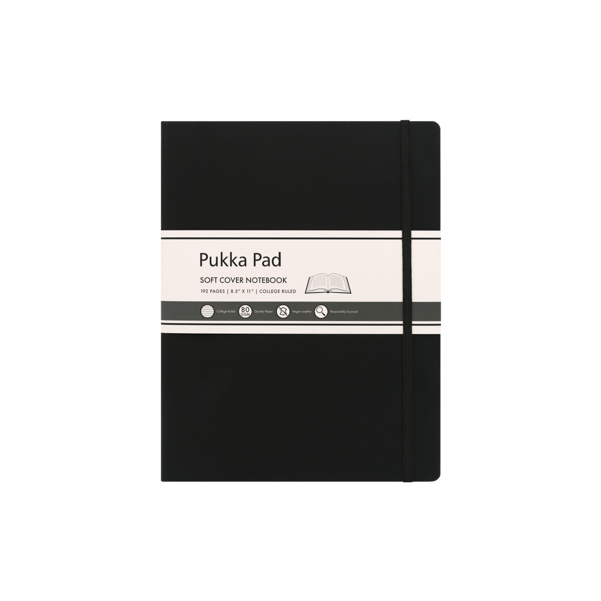 Our signature soft cover notebooks are a must for any stationery enthusiast. The possibilities for a new notebook are endless, whether it becomes your go-to for jotting down school notes, or a place for your next big idea. The signature soft cover notebook measures (8.5" x 11" Lettersize) which is a great size for placing inside your school, or work bags. The practical size also makes these notebooks perfect for writing notes whilst you are out and about. The notebook includes 192 pages of lined, FSC-certified paper which is 80 GSM in weight, perfect for everyday note-taking. The notebook is made from premium vegan leather and includes an expandable pocket and an elastic fastener so your notes will always be safe and secure.