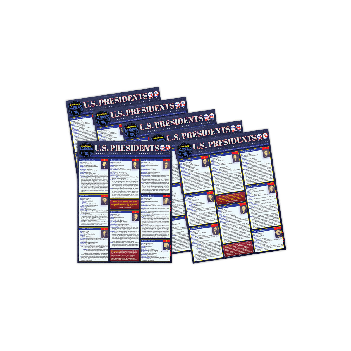 Essential facts for the 47 presidents of the United States with key events that give a quick and concise picture of each president, their time in office, and their personality as recorded in history. A great learning tool for students and the facts they need-to-know, but also a great read for those interested in politics, history, and one of the most important jobs in the world. In six laminated pages David Head, PhD, history professor and author of several books expertly covers the most important details of each president for a very interesting and intriguing snapshot of the role of U.S. presidents throughout history. Gaining this depth of knowledge in such a short time about American leaders who have shaped the world and impacted countless lives is truly valuable.