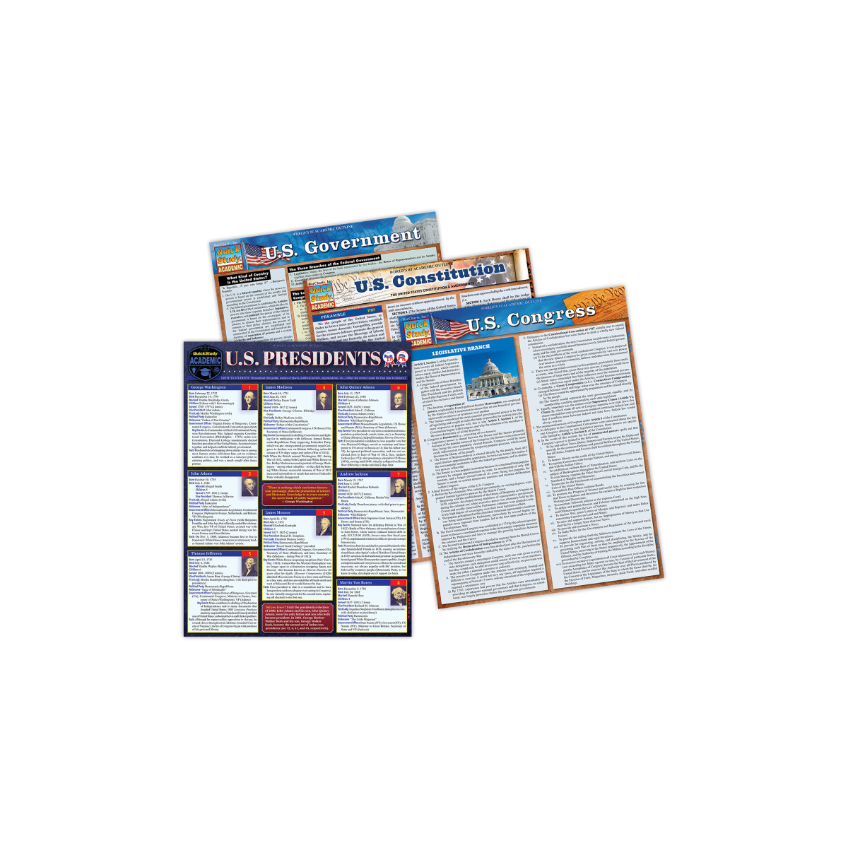 This bundle includes one each of U.S. President, U.S. Government, U.S. Congress & U.S. Constitution Laminated Study Guide sets