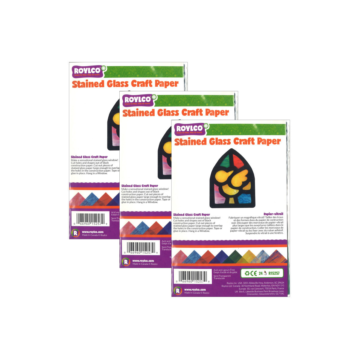 This variety of 8 different patterns is based off authentic stained glass then printed on translucent paper for glass crafting made easy! Perfect for making double-sided sun catchers to hang in the window! Each sheet measures 5.5 x 8.5" (14 x 22 cm). Each pack includes 24 sheets in 8 designs and idea guide. Sold as 3 packs for a total of 72 sheets.