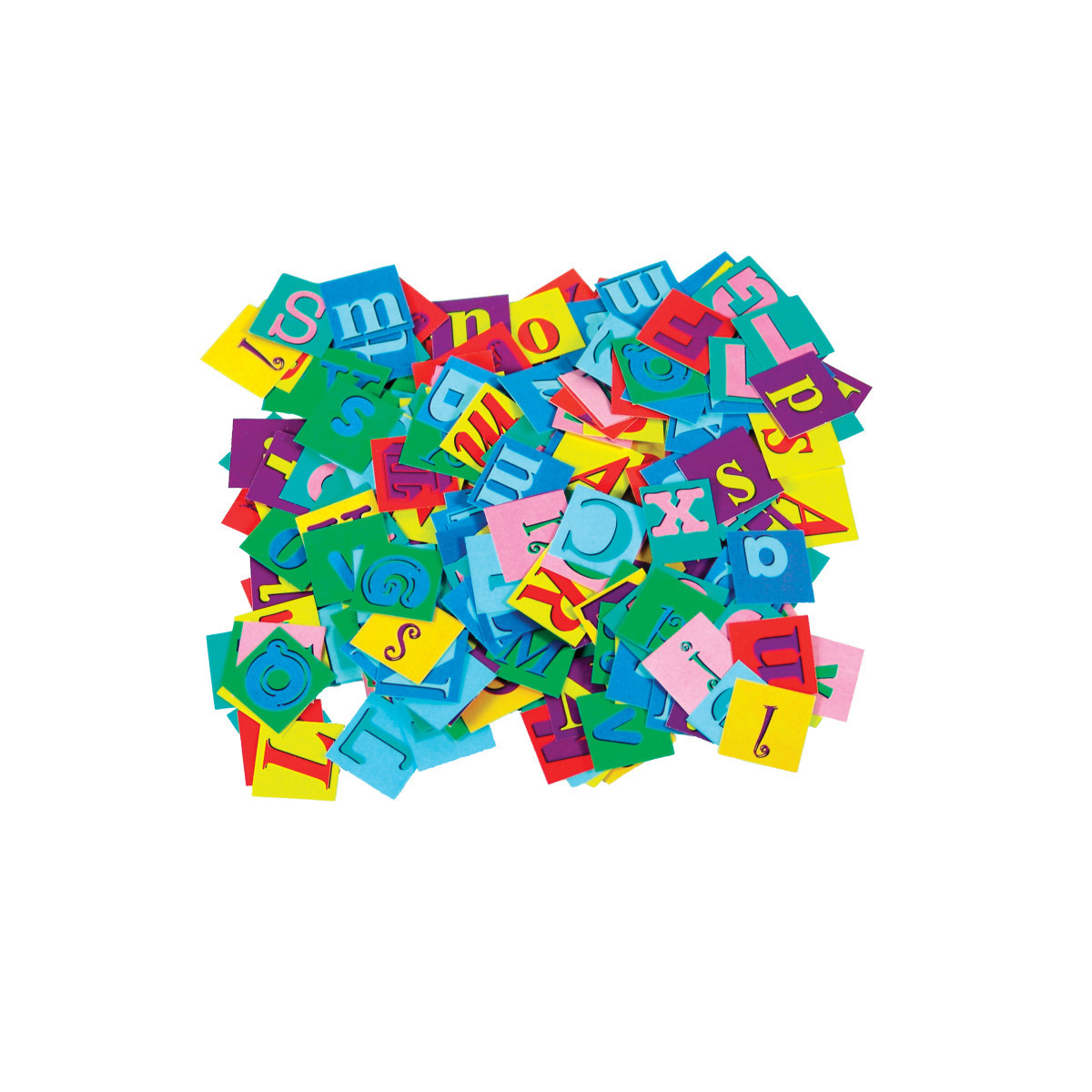 Add words and letters to arts and crafts with Alphabet Pasting Pieces. Fun letters in bright colors printed on both sides of heavy card. Great for arts and crafts projects and preschool language activities. Includes guide with craft ideas. 1" x 1" (3 cm). 2000 per package. Ages 4 and up.
