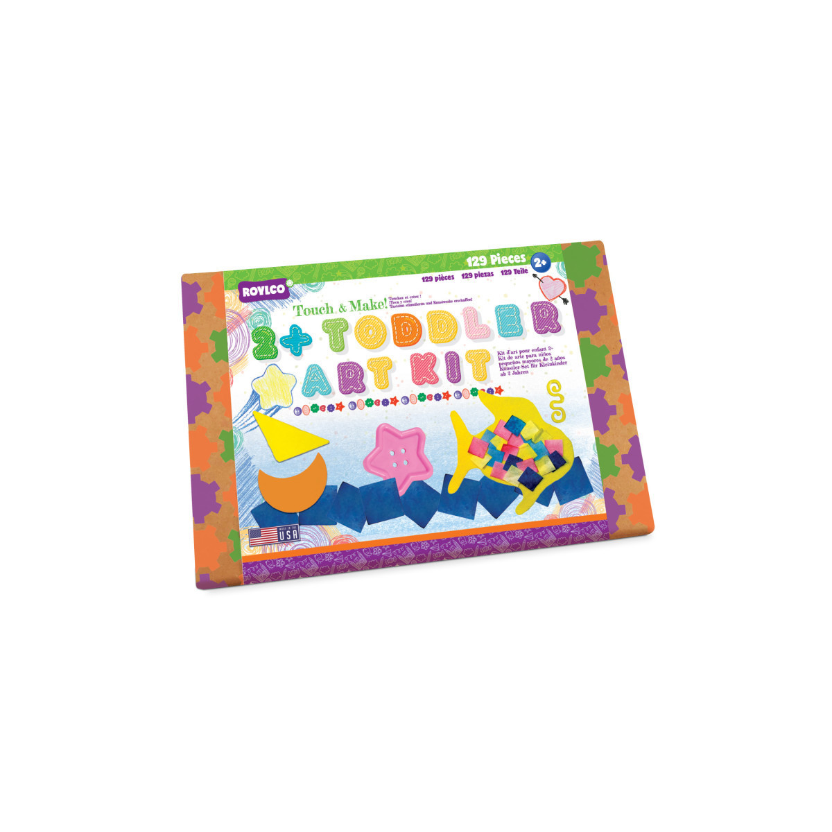 The perfect collection of shapes and textures for kids 2 and up! With lots of fun textures, from soft and rubbery, to crinkly and smooth, kids will be able to explore with their fingers as they learn to assemble shapes into familiar forms. Big, simple and recognizable shapes make it easy for young children to get creative while making adorable pictures! With over 100 fun, simple craft materials inside the kit, those important first steps of creative learning and sensory exploration begin.