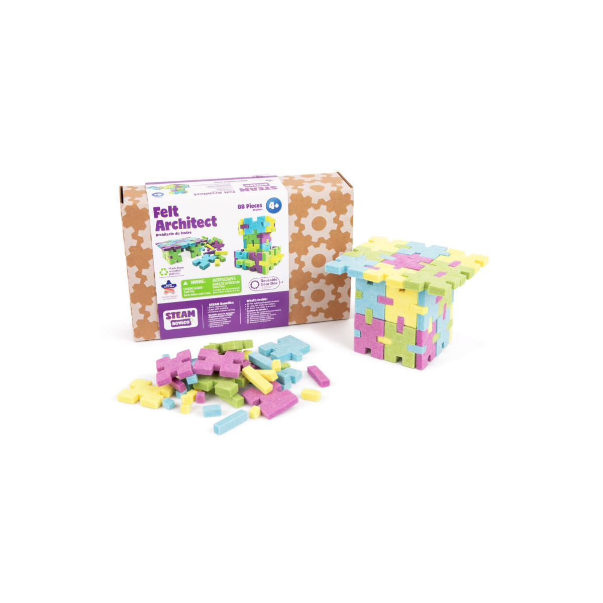 - Includes four colors of soft, felt pieces.