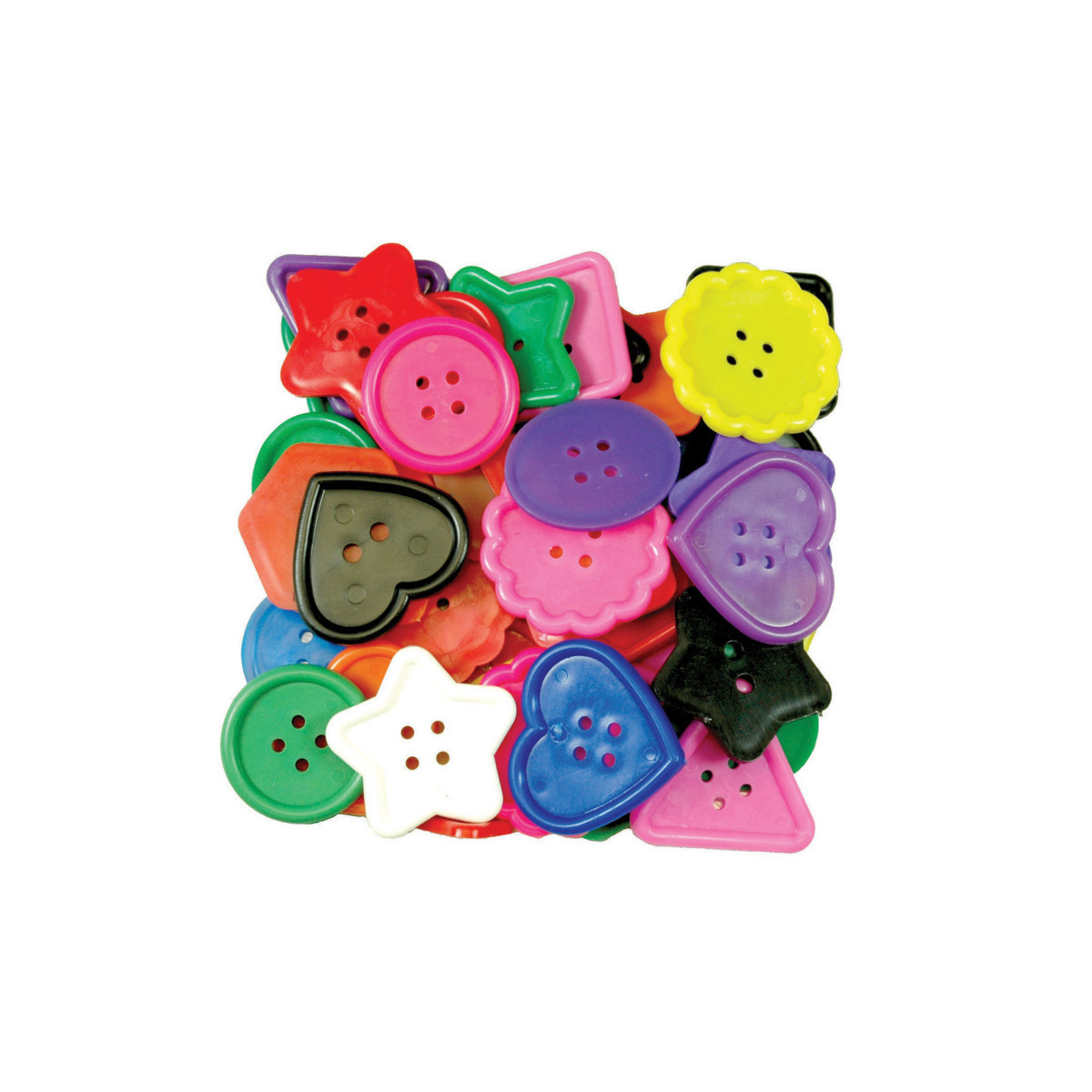 Really Big Buttons™ are perfect for little hands! Introduce counting, sorting and shape recognition with extra big buttons in bright colors. Big holes for easy stringing or use in collage work. Includes: 1lb of buttons. Measures approximately 2" x 2" (5 x 5cm). Includes holes for stringing. Assorted bright colors in 8 different designs.