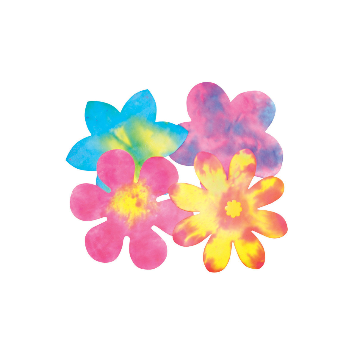 Spray liquid watercolor paint or food color over fabric-like paper with interesting texture. Watch the colors flow and blend. Once the paint is dry, embellish with markers, crayons and glitter glue. Beautiful results are guaranteed! Great for all ages and skill levels. Flowers measure 9" (23 cm). Each pack includes 80 sheets and an idea guide.