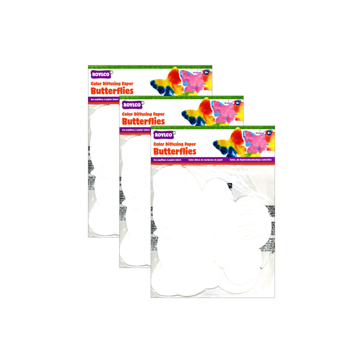 Spray liquid watercolor paint or food color over fabric-like paper with interesting texture. Watch the colors flow and blend. Once the paint is dry, embellish with markers, crayons and glitter glue. Beautiful results are guaranteed! Great for all ages and skill levels. Butterflies measure 7" x 11" (18 x 28 cm). Each pack includes 48 sheets and an idea guide. Sold as 3 packs for a total of 144 sheets.