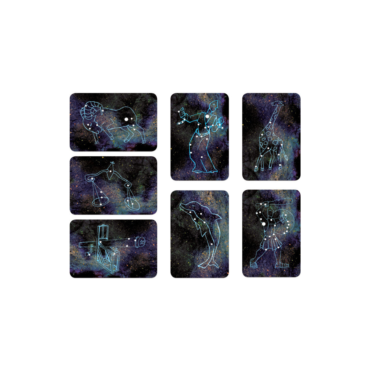 - Translucent, tear-resistant cards featuring astronomically correct constellations.