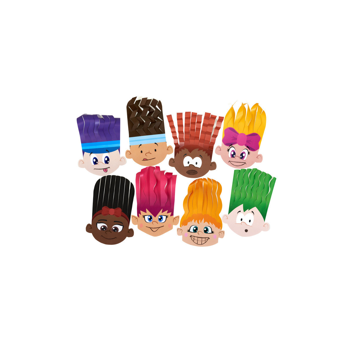 Develop important fine motor skills while having fun with every snip! Printed on eight different skin tones and featuring seven hair combinations, our beautiful paper promotes diversity and inclusivity in play. Encourage children to unleash their creativity as they cut along the dotted lines and style the hair with trimming, folding, and curling techniques. Use crayons or markers to add a mouth to express emotions, fostering imaginative storytelling and emotional intelligence. Made from high-quality, sustainable paper, this engaging activity not only nurtures creativity but also instills eco-conscious values. Let the hair styling adventure begin! Includes 32 faces, 5-1/2" x 8-3/4″ (14 x 22 cm).