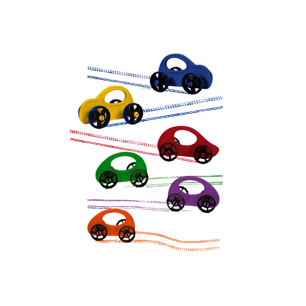 Introducing Paint Racers, where creativity and play collide into a colorful race of artistic expression! Designed to snap on different tires for various paint effects, these racers add an extra layer of fun and experimentation to each masterpiece. Simply run the Racers through paint and apply them onto paper with the convenient handles, ensuring a mess-free painting experience that keeps the focus on creativity. Crafted from recycled plastics, these Racers inspire both artistic exploration and environmental responsibility. Featured in the six vibrant colors and six unique tread motifs, the creative ideas are endless. Our Paint Racers are great for adaptive art, accommodating a wide range of abilities and ensuring everyone can enjoy the fun! Snap on different tires to achieve interesting effects. Includes: 6 Cars, 24 tires, 2-1/4" x 4″ (5.75 x 10 cm).