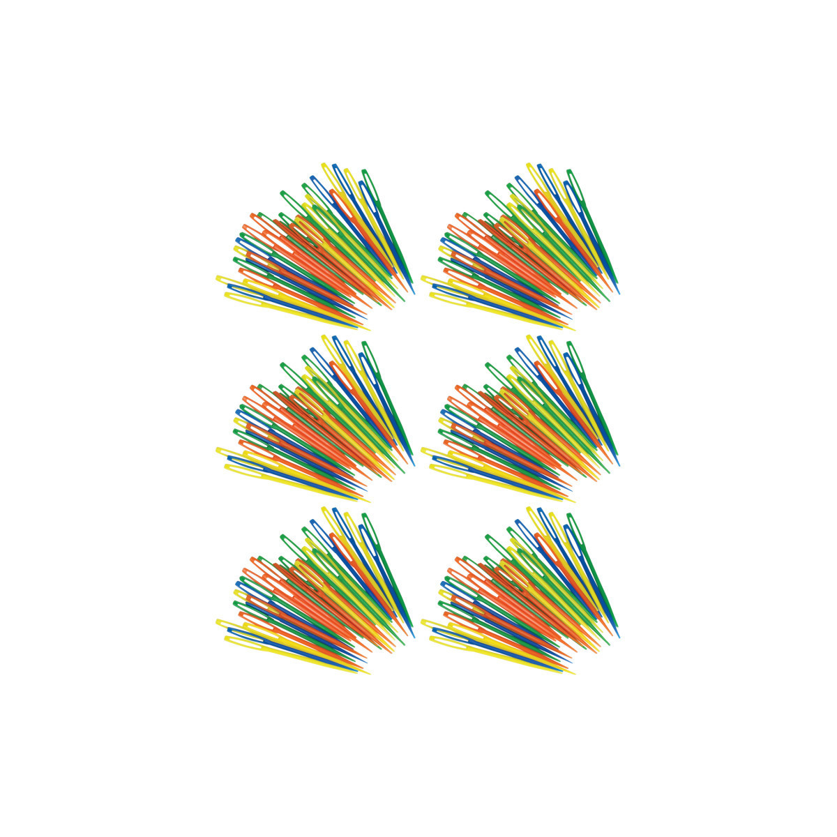 Child friendly lacing needles in an assortment of colors! Easy-to-use. Rounded tip. Measures 3" long. Each pack includes 32 lacing needles. Sold as 6 packs for a total of 192 lacing needles.