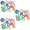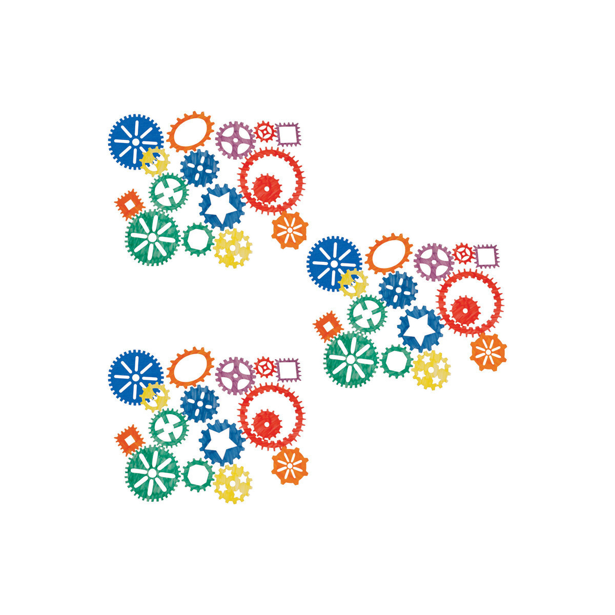 Gears are science in motion! 15 interlocking gear stencils represent round, square and oval gears, allowing the artist (or engineer!) to fit them together to create a mechanical masterpiece. Set of 15 interlocking semi-translucent plastic stencils ranging from 3"-9" and guide. Age 4+ Made in USA. Sold as 3 sets for a total of 45 stencils.