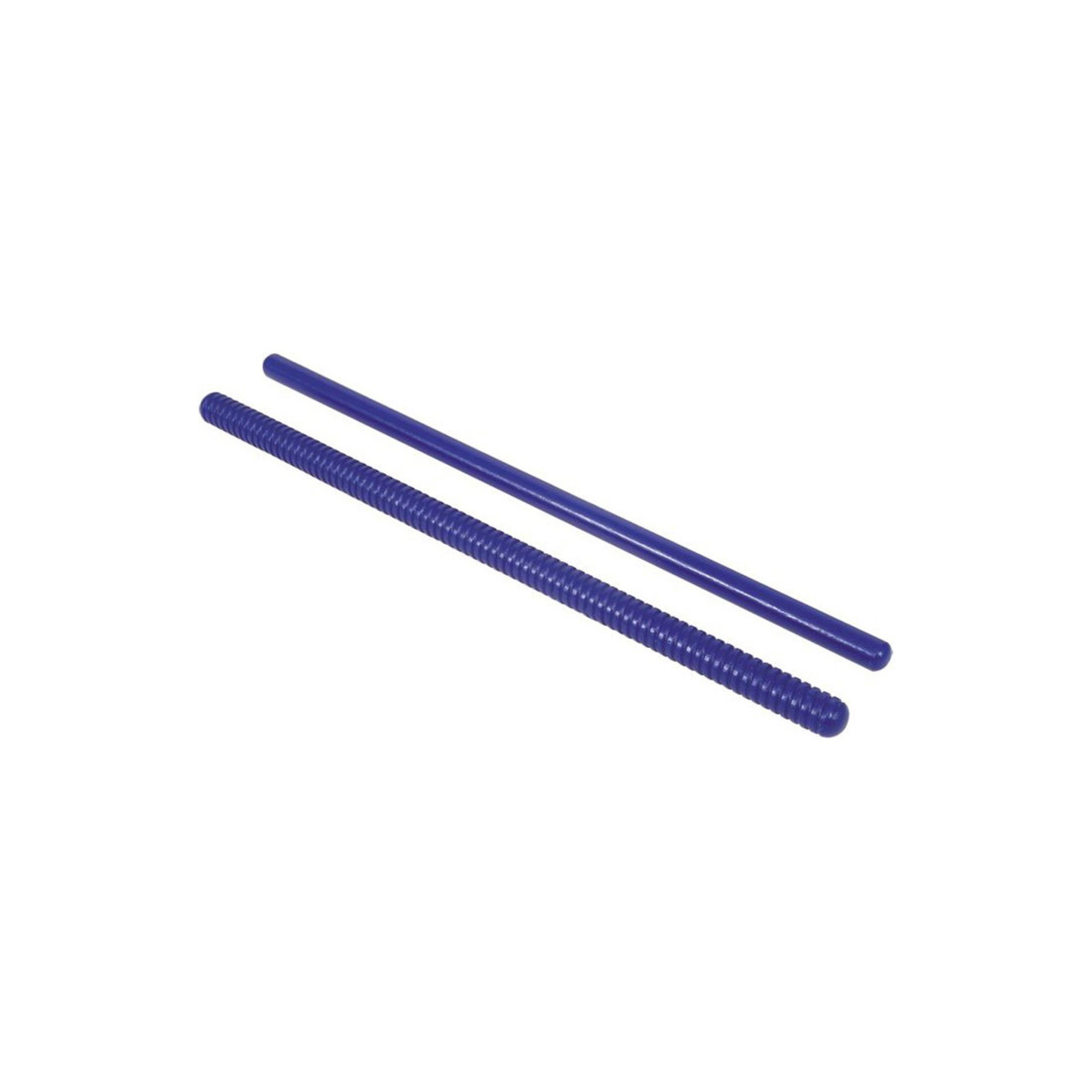 Rhythm Sticks are made of fine northern hardwoods for maximum tone and tonal effect. Beautifully finished in hard, high-gloss enamel. The sticks are 14" long, fluted or plain, with rounded ends