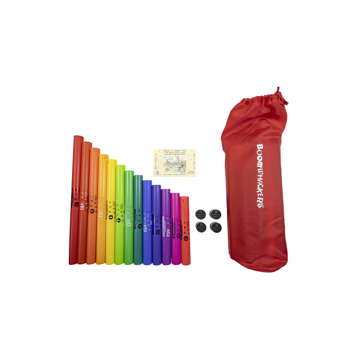 Found in most elementary music classrooms and music therapy programs around the world, these color-coded, tuned percussion tubes provide an opportunity for any age and ability to experience success making music. Popular around the world for all ages and abilities! With no limit to the creative learning process, students can feel the joy of learning and experiencing rhythm, pitch and movement while having fun! This set includes 13 Tubes, 4 Caps, 1 Book, and 1 Carrying bag.