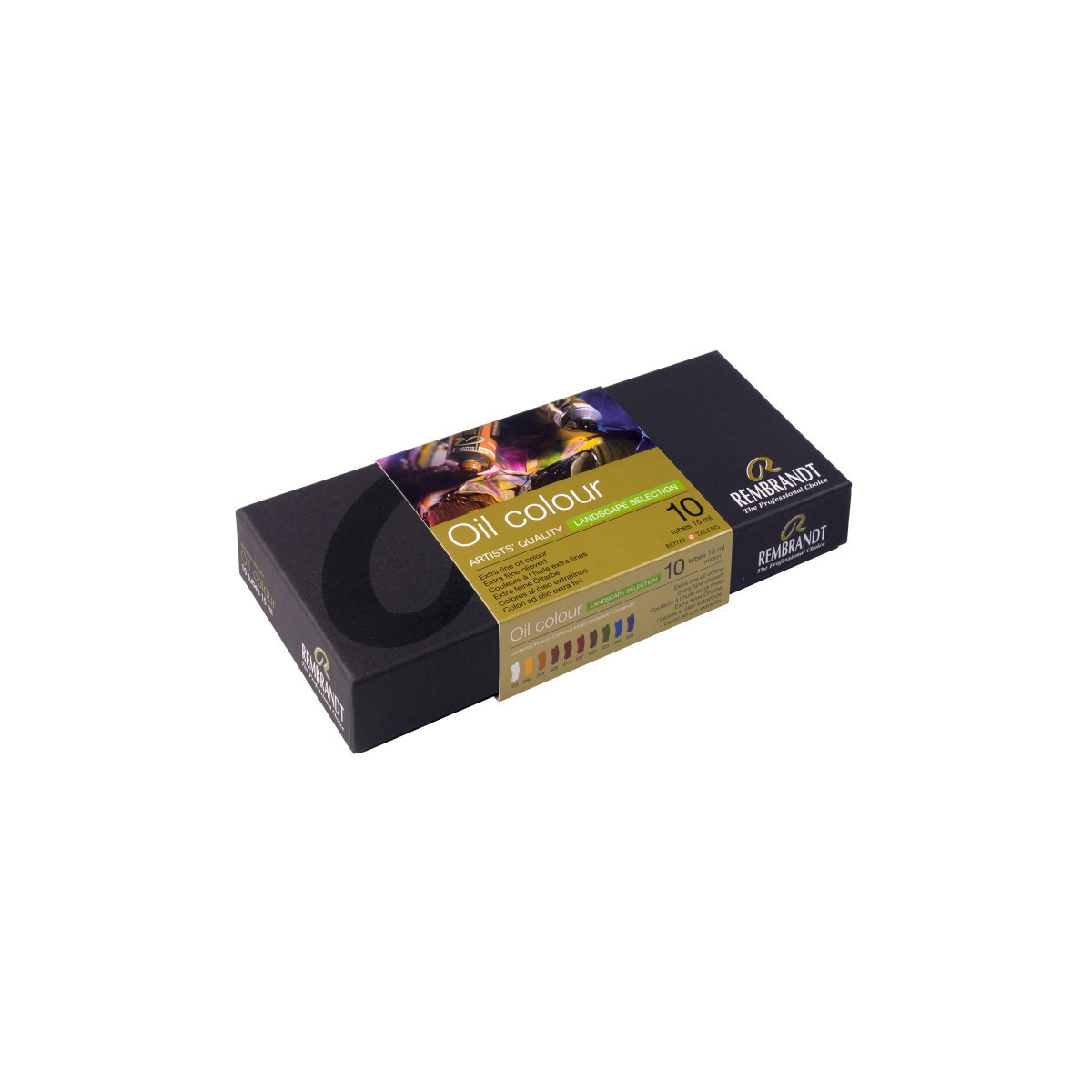 Landscapes often show a wide range of colors. The color palette in this set allows for the most distinctive color nuances to be created. Mix a full spectrum of landscape colors with this compact set and eliminate the need to carry large numbers of paint colors when plein-air painting. Rembrandt oil paint has been developed through pure skill and artistic insight and is based on the best raw materials. These extra-fine quality oil colors have a uniform viscosity and are crafted with a high concentration of premium-quality pigments that offer the highest degree of lightfastness. Buttery oil paint with a pasty consistency for a clear brush stroke. Ground multiple times on a triple roller mill to create an artists’ quality fineness. Offers a uniform viscosity and the highest degrees of lightfastness. Skillfully crafted in the Netherlands since 1899. Contents: 10 x 15 ml tubes: Mixed White, Permanent Yellow Medium, Raw Sienna, Raw Umber, Burnt Sienna, Permanent Violet Medium, Olive Green, Sap Green, Cerulean Blue, Ultramarine Deep.