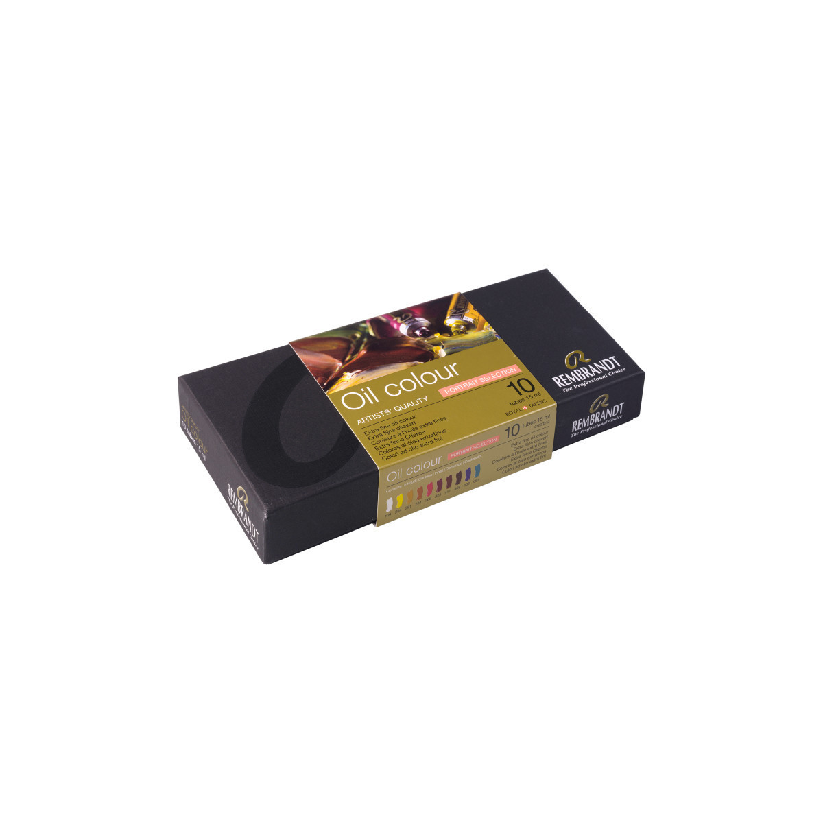 This set comprises an indispensable color palette for mixing every conceivable portrait tint. The palette mostly consists of transparent shades, perfect for layering and creating the illusion of realistic, slightly translucent skin. Lighten these shades without losing transparency using Zinc White. Rembrandt oil paint has been developed through pure skill and artistic insight and is based on the best raw materials. These extra-fine quality oil colors have a uniform viscosity and are crafted with a high concentration of premium-quality pigments that offer the highest degree of lightfastness. Buttery oil paint with a pasty consistency for a clear brush stroke. Ground multiple times on a triple roller mill to create an artists’ quality fineness. Offers a uniform viscosity and the highest degrees of lightfastness. Skillfully crafted in the Netherlands since 1899. Contents: 10 x 15 ml tubes: Zinc White, Permanent Lemon Yellow, Transparent Yellow Green, Raw Sienna, Quinacridone Rose, Burnt Carmine, Burnt Sienna, Raw Umber, Ultramarine Deep, Ultramarine Green.