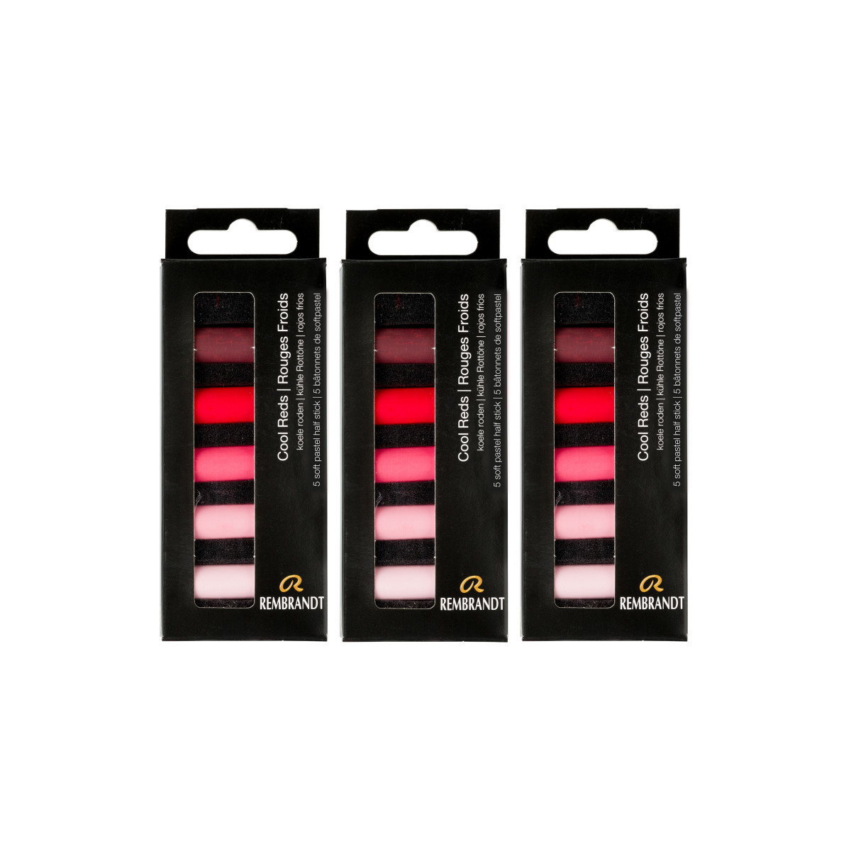 Rembrandt soft pastels are world renowned, professional-quality sticks that are manufactured with only the purest pigments and finest quality kaolin clay. They are made in The Netherlands under strict quality control standards. Each color is made with unique pigmentation formulas. These round sticks have excellent softness for beautiful color release and toning. Each set includes 5 half pastels (371,3 - 371,5 - 371,7 - 371,8 - 371,9). Sold as 3 sets for a total of 15 half pastels.