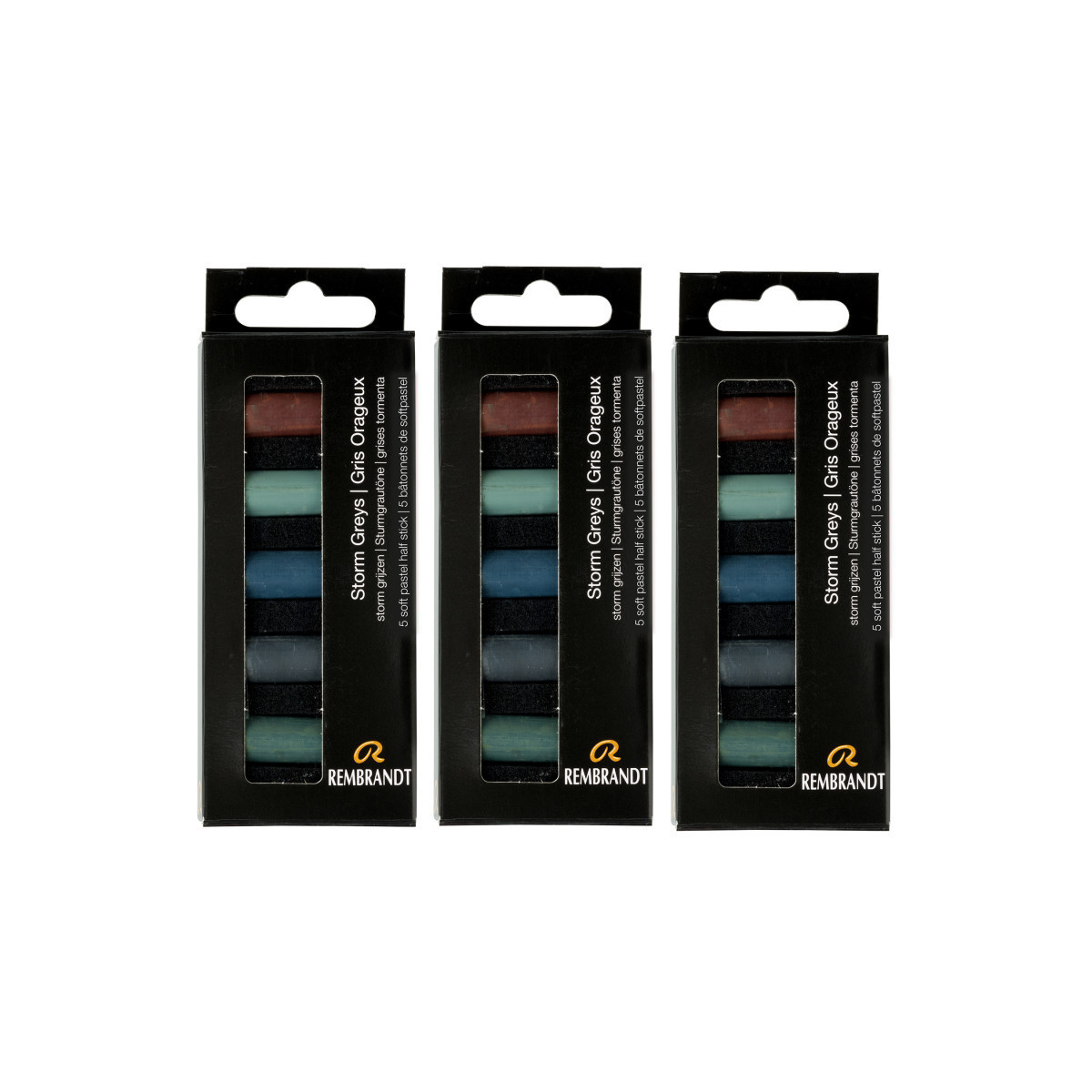 Rembrandt soft pastels are world renowned, professional-quality sticks that are manufactured with only the purest pigments and finest quality kaolin clay. They are made in The Netherlands under strict quality control standards. Each color is made with unique pigmentation formulas. These round sticks have excellent softness for beautiful color release and toning. Each set includes 5 half pastels (409,7 - 704,7 - 727,7 - 707,7 - 709,7). Sold as 3 sets for a total of 15 half pastels.