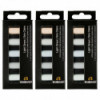 Rembrandt soft pastels are world renowned, professional-quality sticks that are manufactured with only the purest pigments and finest quality kaolin clay. They are made in The Netherlands under strict quality control standards. Each color is made with unique pigmentation formulas. These round sticks have excellent softness for beautiful color release and toning. Each set includes 5 half pastels (409,10 - 704,10 - 727,10 - 707,10 - 709,10). Sold as 3 sets for a total of 15 half pastels.