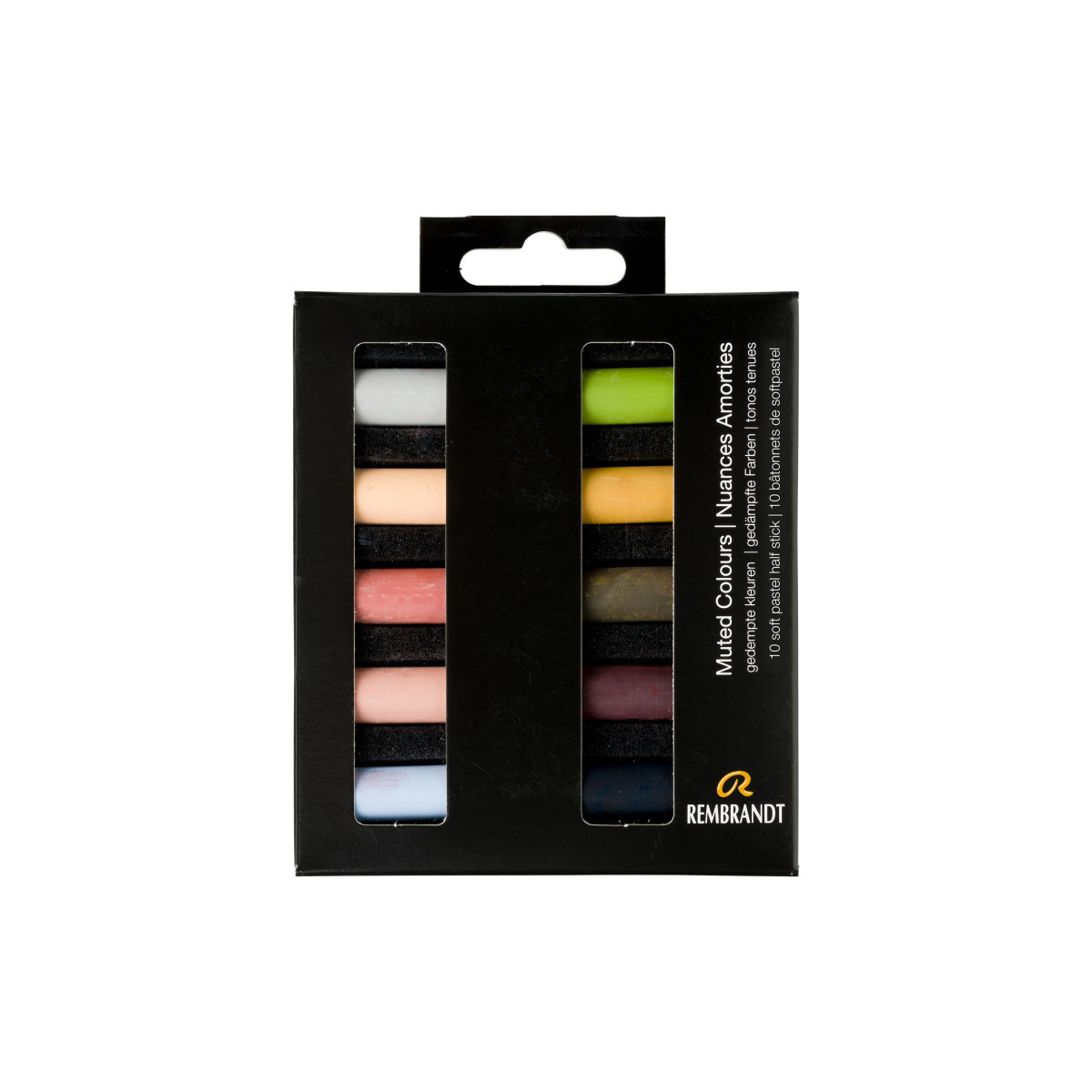 Rembrandt soft pastels are world renowned, professional-quality sticks that are manufactured with only the purest pigments and finest quality kaolin clay. They are made in The Netherlands under strict quality control standards. Each color is made with unique pigmentation formulas. These round sticks have excellent softness for beautiful color release and toning. Contents: 10 half pastels (704,1 - 236,9 - 372,8 - 331,8 - 505,9 - 620,8 - 234,8 - 408,7 - 343,7 - 709,5).