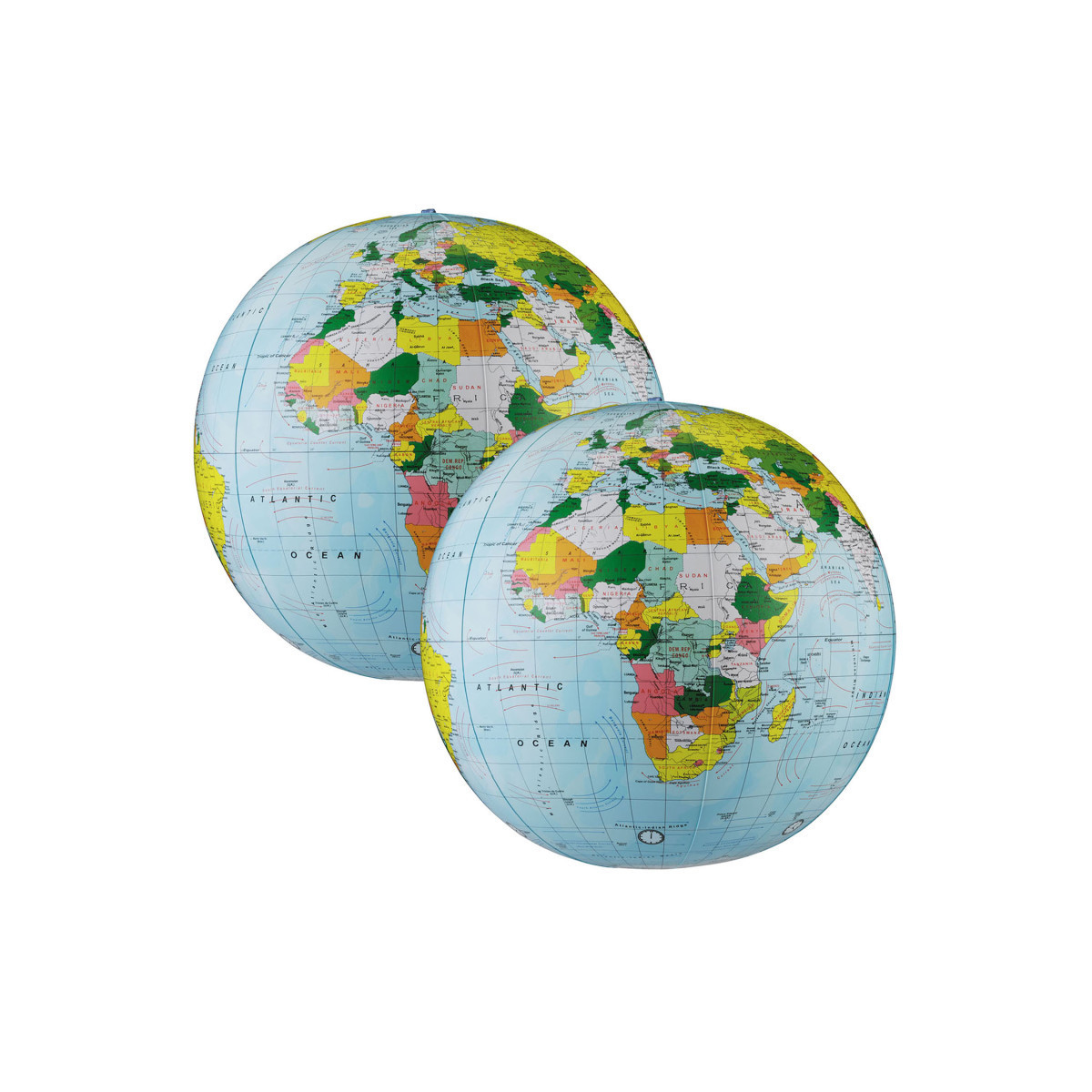 Introduce children to geography with this inflatable globe. Globe is brilliantly colored and extremely durable. Measures 12" diameter. See the world in its proper perspective. Spin a globe and land where you will. Discover a place. Imagine a place you've never been. People and places, future and past. Ideas. History. Oceans. Mountains. Countries. Cultures. Sold as a pack of 2 globes.
